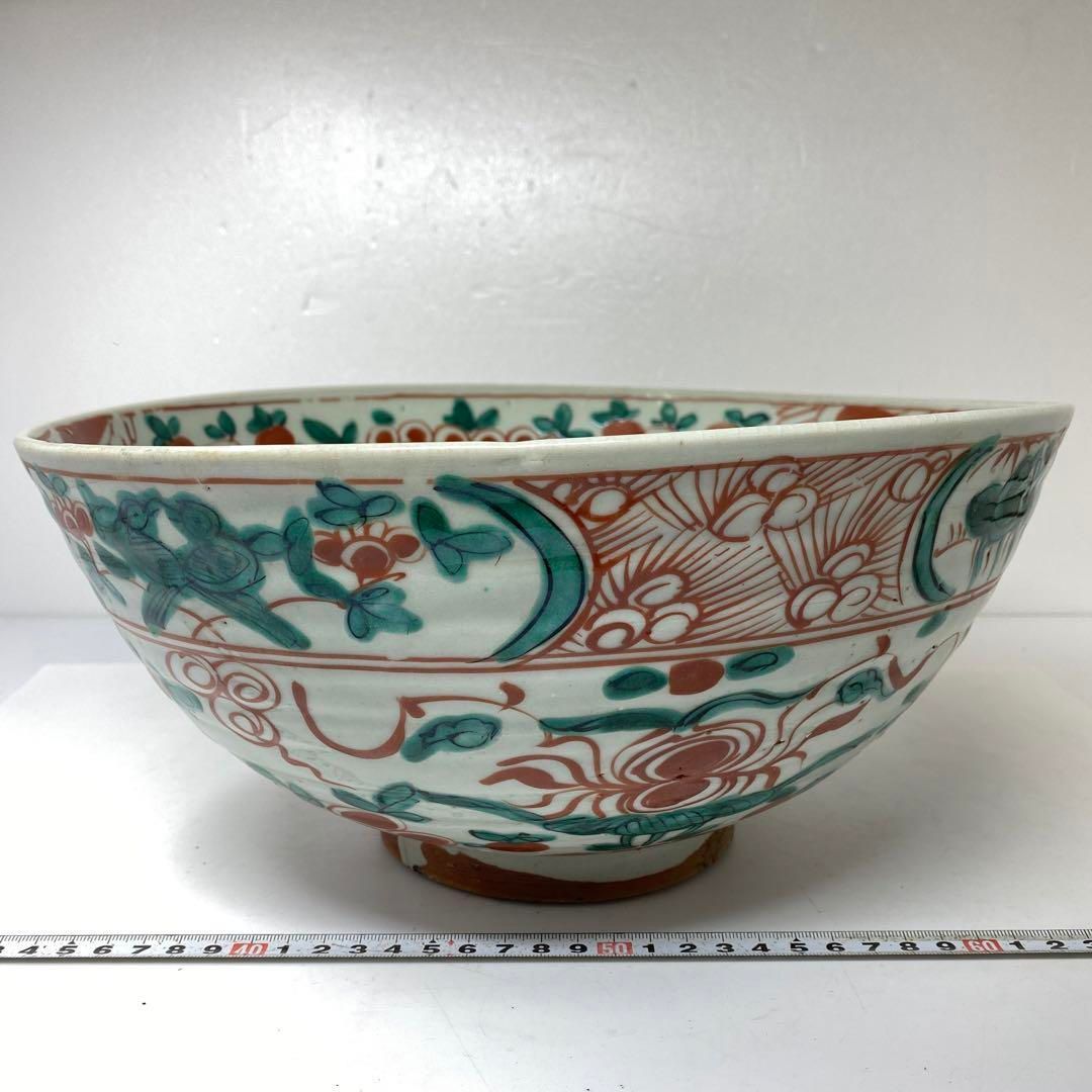 中国明時代 呉州赤絵大鉢 トヒチ 口径約32㎝ 東里6 1019 2 F