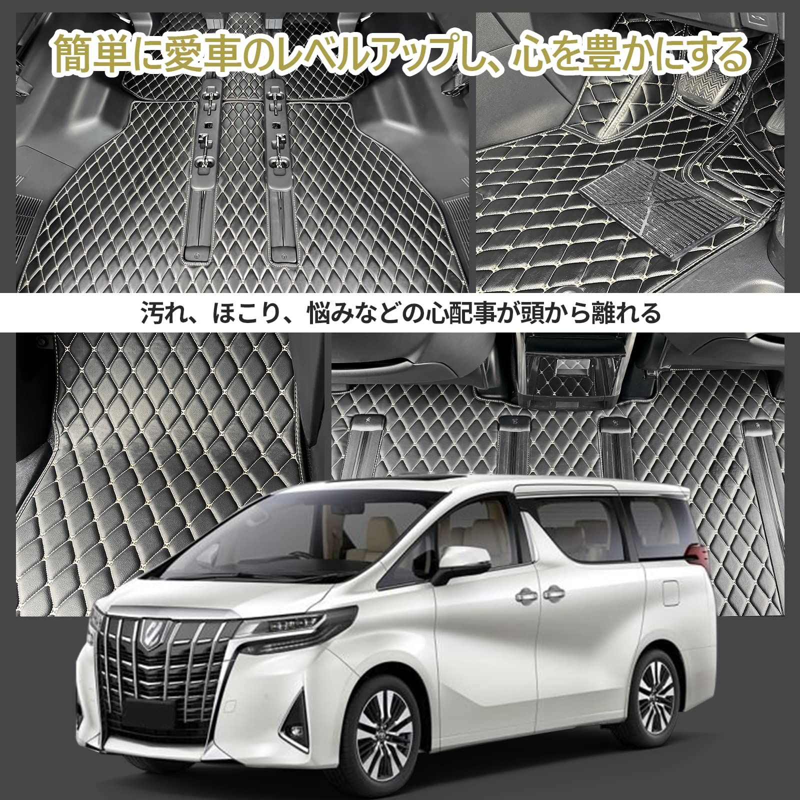 フィット 10分簡単取り付け 20 30系 トヨタ車 アルファード ヴェルファイア フロアマット ステップマット 認証済み 防水 汚れ防止 耐磨耗 豪華 上品 取り付け簡単 耐久性 2年 ブラック ゴールド HM 3