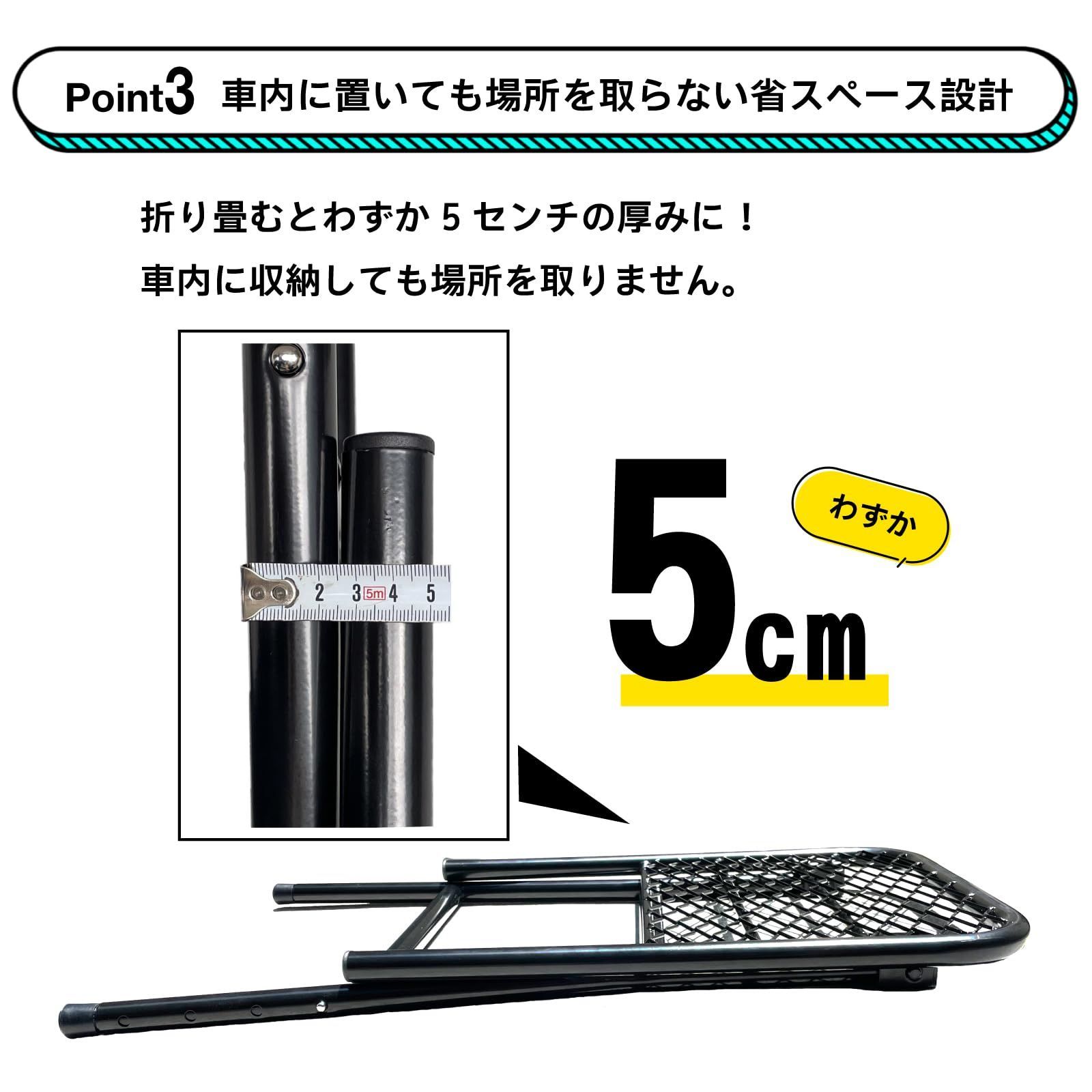 折り畳むと薄さ5cm、車内に置いても場所を取らない省スペース設計