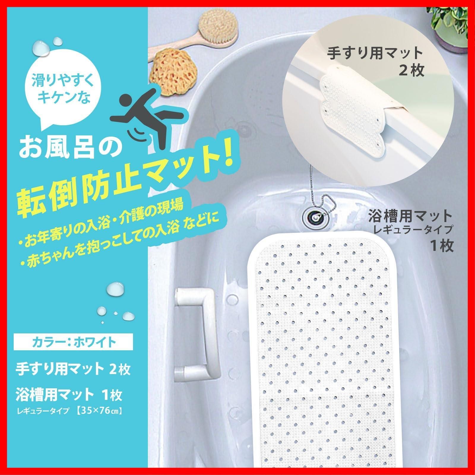 手すりマット 浴槽マット セット スベリを防ぐ 35 76 cm 滑り止め ホワイト 浴槽 浴槽内 お風呂 滑り止めマット