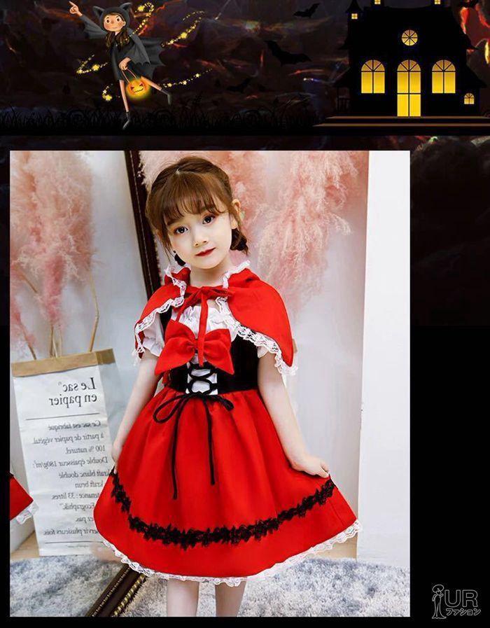 衣装 子供 女の子 コスプレ 仮装 コスチューム キッズ 子供ドレス 赤ずきん ケープ 子供服 ワンピース 童話 発表会 赤 パーティー ドレス 子供用 子ども 幼稚園 halloween 09