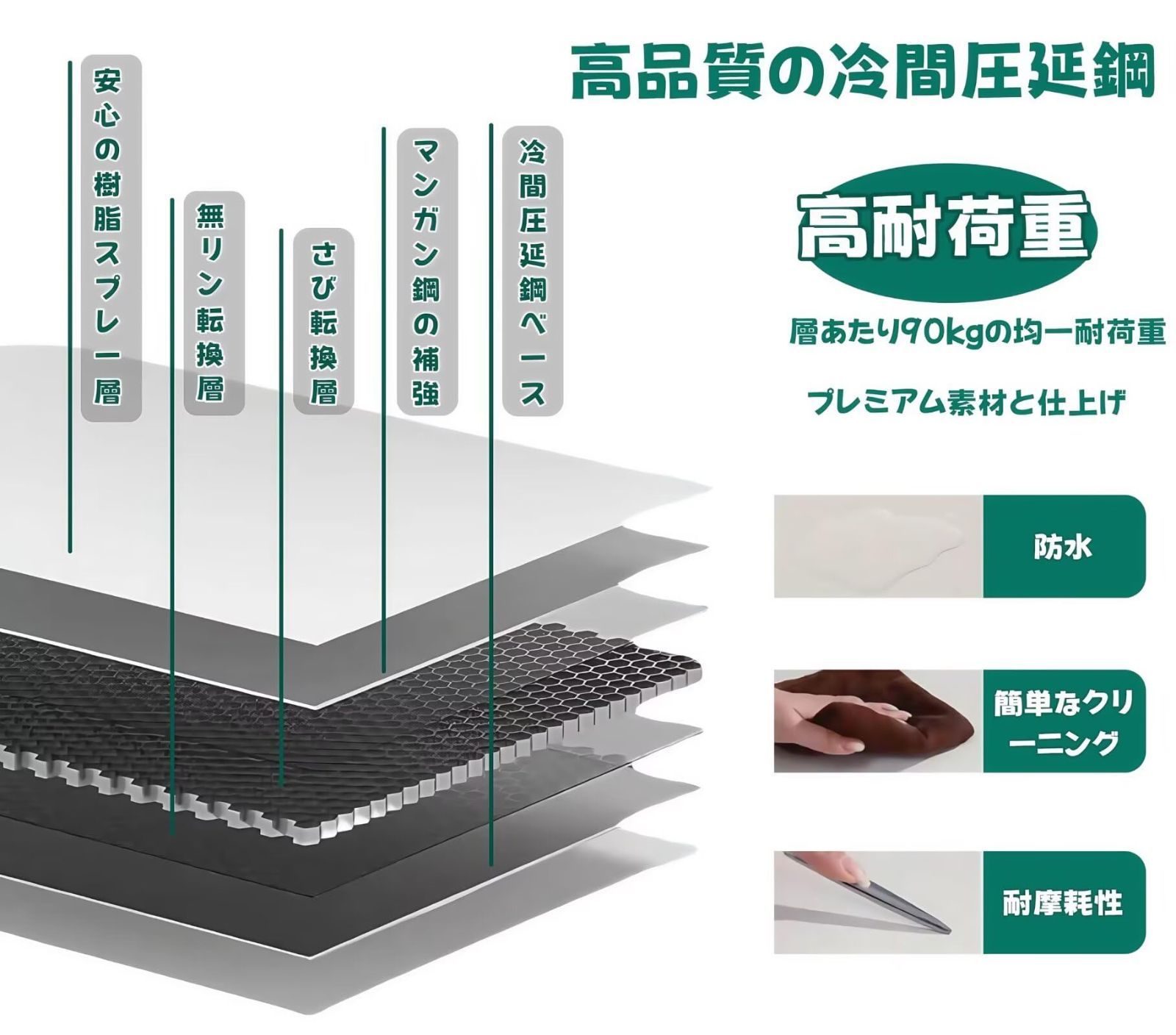 【プレミアム素材と仕上げ】冷間圧延鋼板でできており、独特の臭いがなく健康的で、防水性があり、耐火性、防錆性、掃除が簡単で、安定して耐久性があり、曲がりにくく、長寿命です。ボードは滑らかで、高温で焼かれ、傷がつきにくく、繊細な手触りです。