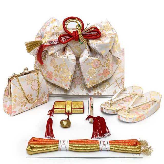7歳女の子用の正絹のお着物に、結び帯や箱せこセット、着付けに最低限必要な小物を揃えたフルセットです。