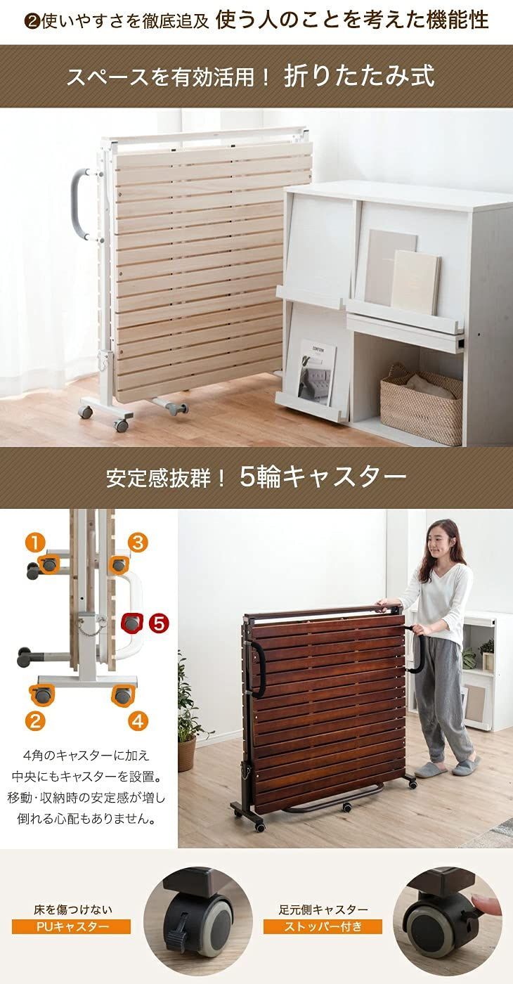 ヘッドレス 木製 シングルベッド ベッドフレーム 耐荷重約300 kg 桐 ブラウン すのこベッド 折りたたみベッド シングル 90018 ベッド タンスのゲン