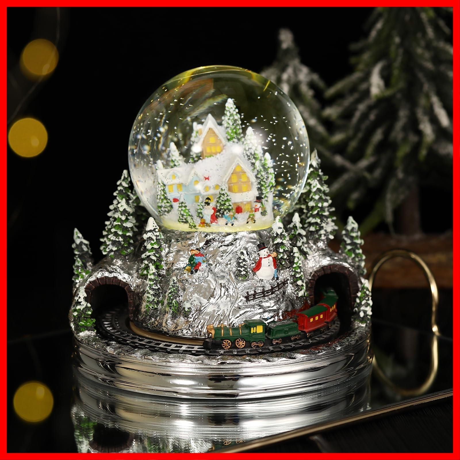Lewondr スノードーム クリスマススノードーム クリスマスツリースノーグローブ ライト内蔵 USB&電池式 2Way給電 8曲クリスマスソング自動ループ ガラス/樹脂製 クリスマスプレゼント インテリア クリスマス置物飾り 冬の森鉄道