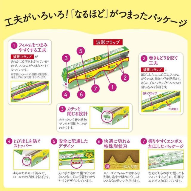 巻きもどりやとび出しを防ぐ工夫など、「サランラップ」は使いやすさも考えています。