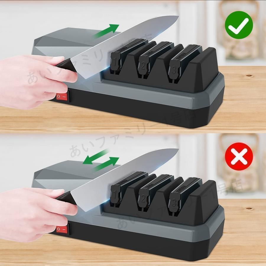包丁研ぎ器 電動 包丁研ぎ シャープナー 片刃.両刃.波刃など 充電式 超高硬度 耐久性 便利 研ぎ器 キッチン 刃3mm以内ナイフ用