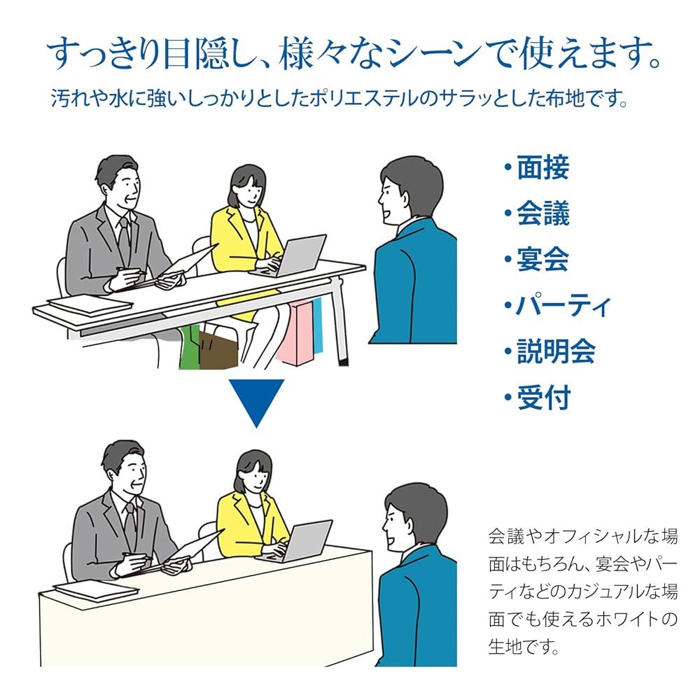 【様々な空間に】会議などのオフィシャルな場面ではもちろん、パーティや宴会などのカジュアルな場面でも使えるホワイト生地で、その場の雰囲気に合う場面を演出できます。