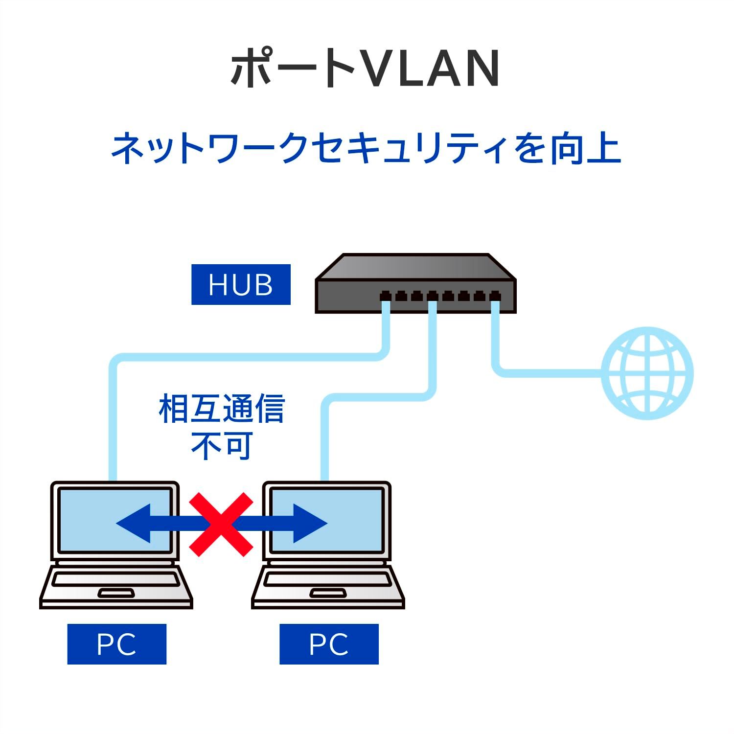 ■特長:ループ検知・防止やポートVLANに対応 モード切替スイッチで機能切り替えが可能なL2スイッチングハブ
