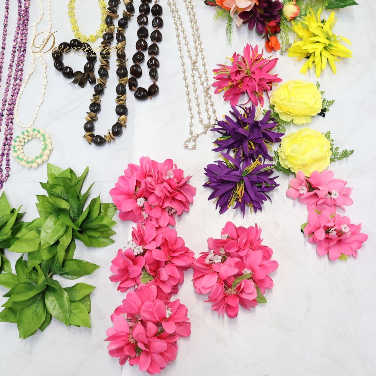#フラダンス #タヒチアンダンス #フラワーレイ #リーフレイ #髪飾り #ネックレス #民族舞踊 #衣装小物 #ハワイアン #ダンス用品 #フラステージ #セット販売 #お得感 #ダンス衣装 #女の子用 #祭り #イベント用 #装飾品 #小物セット #ENUTSU