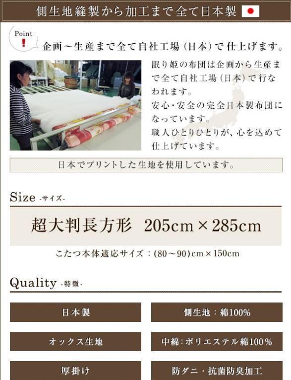 こたつ用品 こたつ布団 こたつ掛 防ダニ キリム 長方形 超大判 205 285 cm オックス 生地 綿 厚掛タイプ