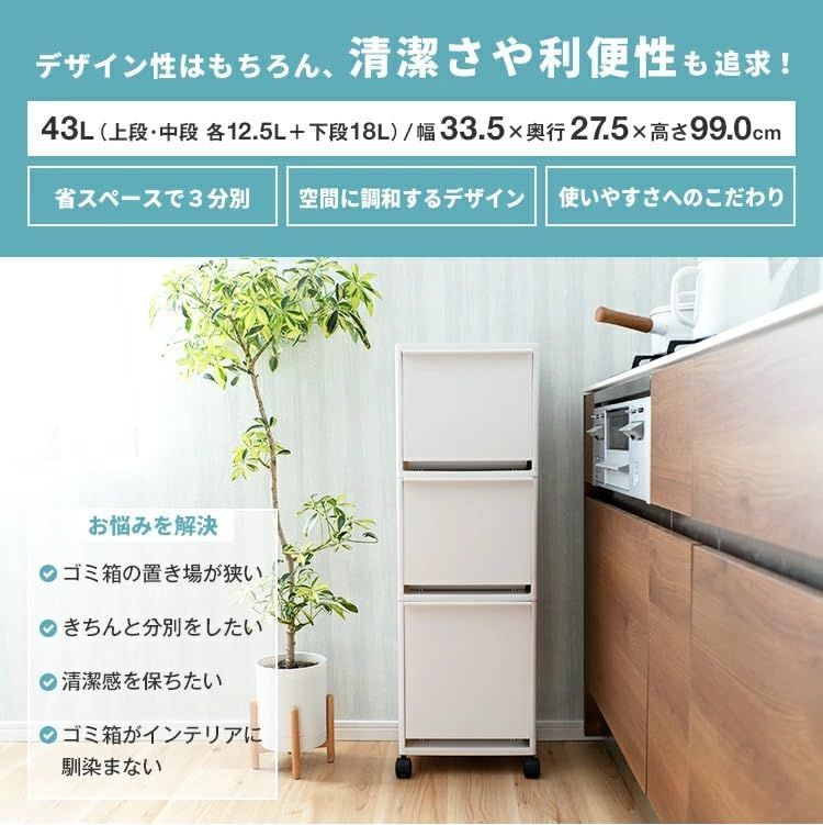 機能性とデザイン性にこだわったダストボックス。プッシュで簡単開閉。20L×3個でたっぷり入る60L