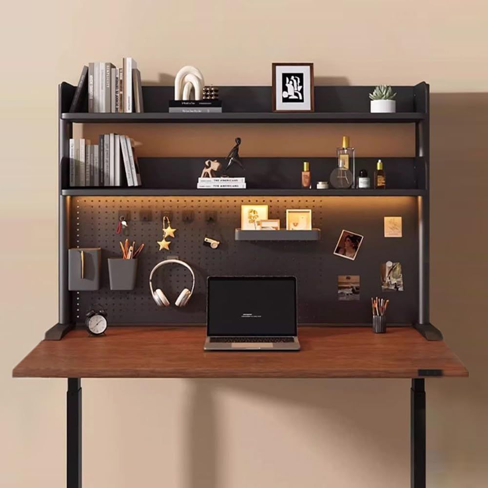 【DIY収納デスク上置棚】 デスク上ラックは有孔ボード設計を採用し、イヤホンや鍵、小物を自由に掛けて収納できます。優れた収納力を発揮し、デスク空間を有効活用しながら、個性的で機能的なスタイルを作り出します。