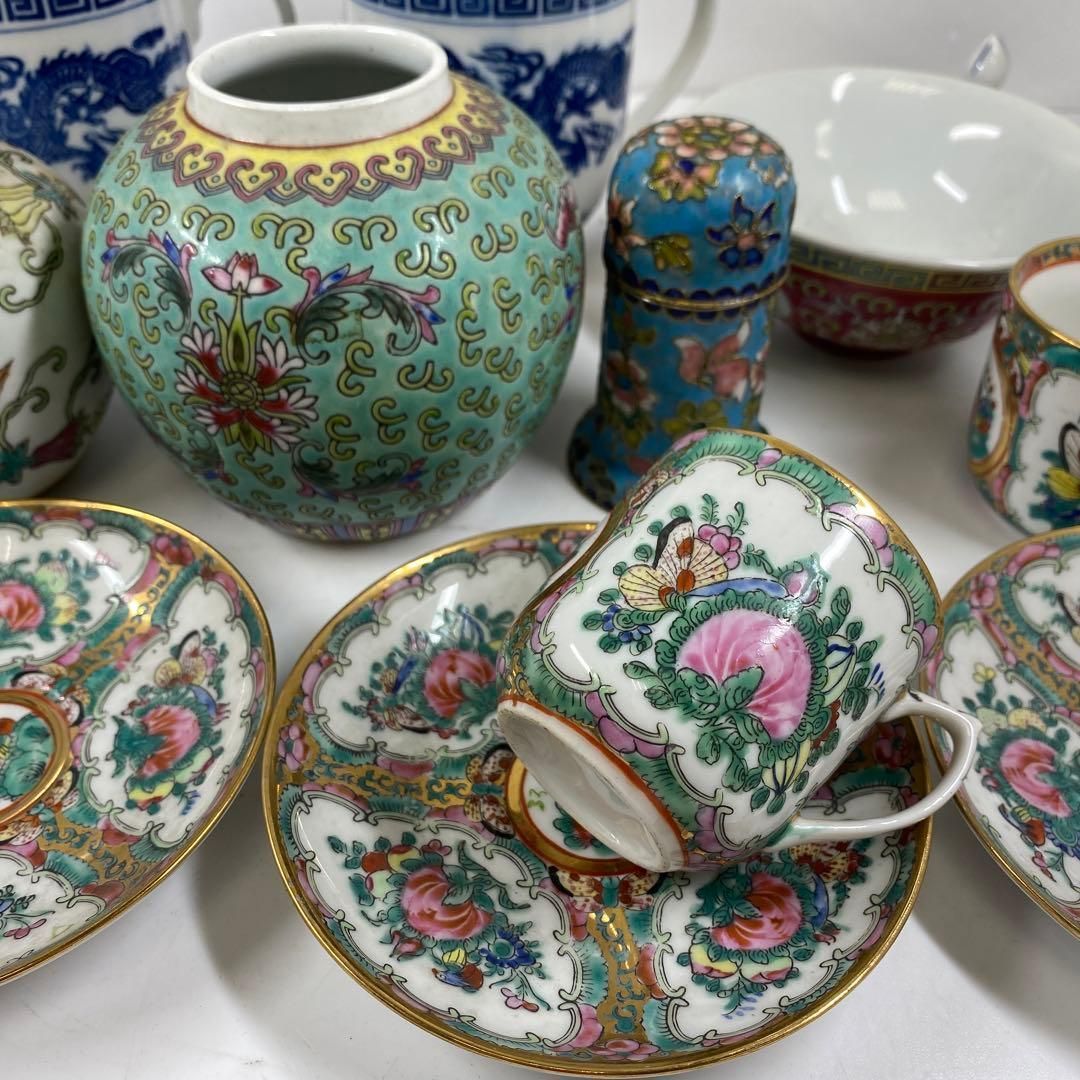 中国景徳鎮 粉彩茶器セット高さ14 5〜2 5㎝ 蓋込 タニチ東な6 1012