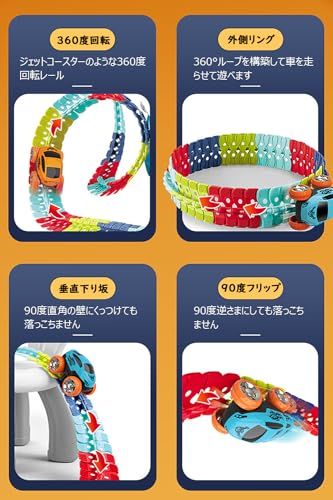 【レールの上を走る車おもちゃ】車はレールの上を走ることができ、レールは曲げたり、スナップしたりして、さまざまな形に変形することができます。屋内はもちろん、屋外スペースをDIYのトラックコースに変え、そびえ立つトラックや360ループを構築して車を走らせて遊べます。