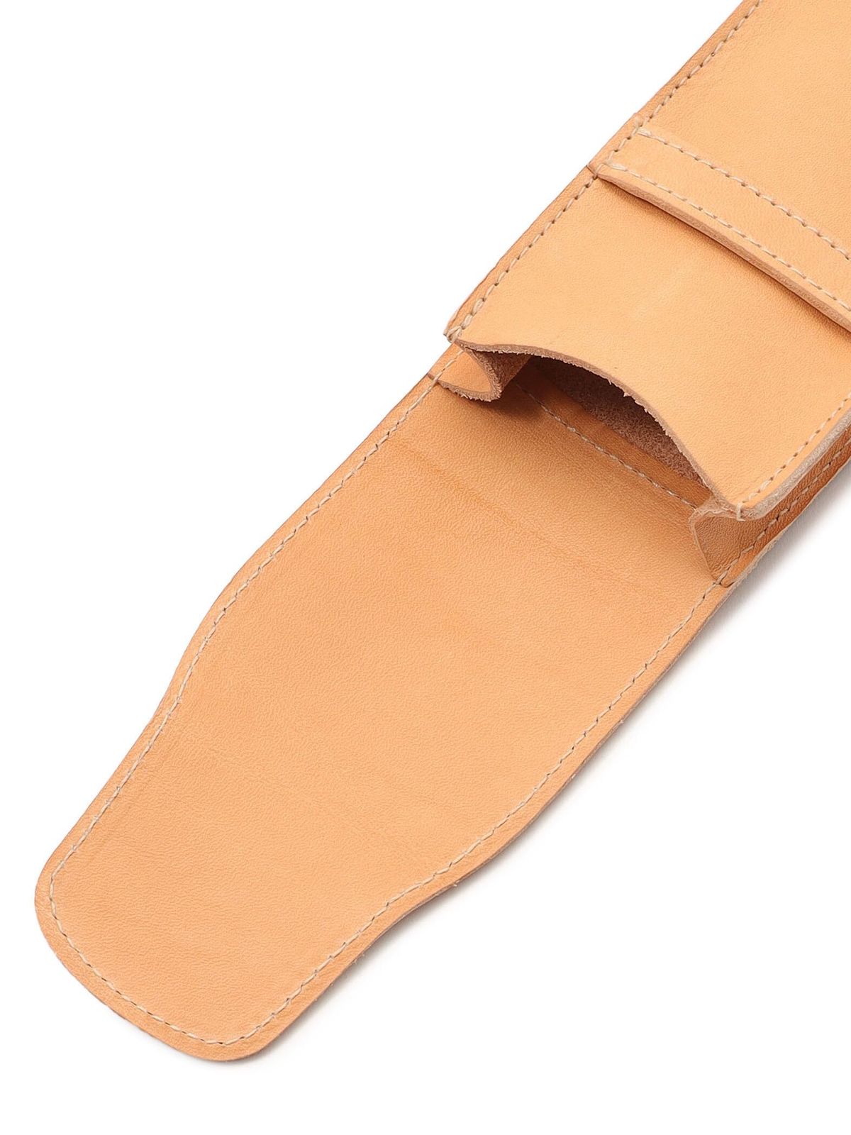 手持ちのステーショナリーをすっきりとスマートに収納できるペンケース。ブランドならではの上質な素材使いで、クラス感のある仕上がりになっています。フラップの先端をループに通して留めるつくり。デスクまわりに置いておくだけでも格調の高い空気感を放つアイテムです。使うごとに味わい深くなり、自分らしい表情を長く楽しむことができるのも魅力です。
