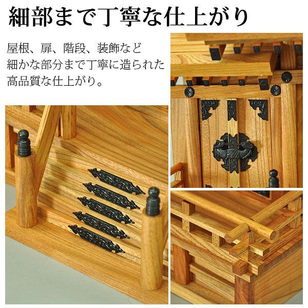 本ケヤキを用いて国内の工場で丁寧に造られたの神棚
