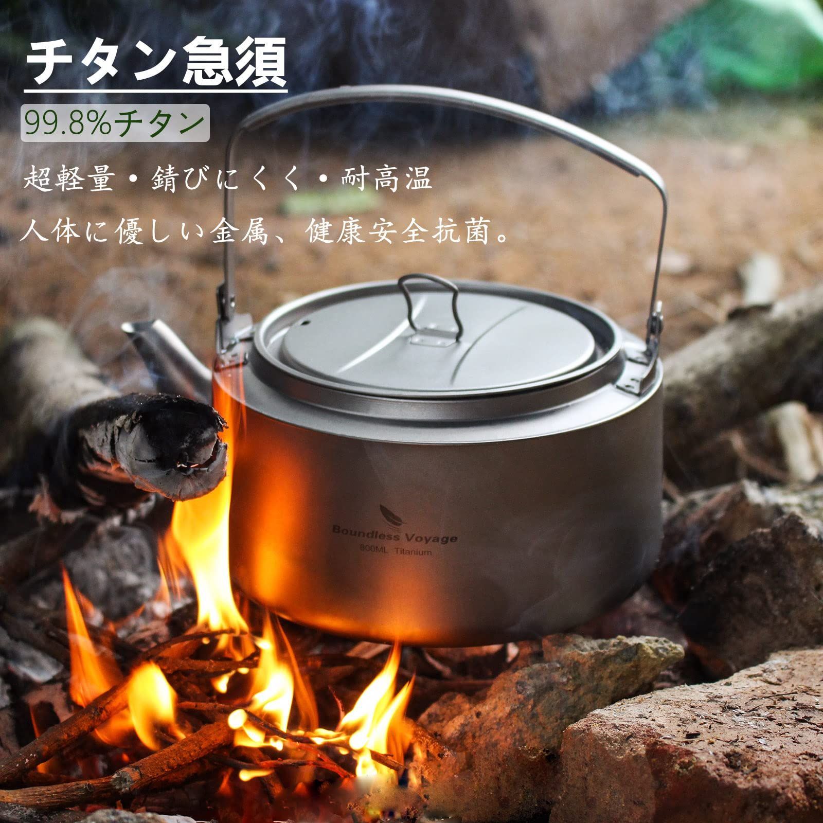丸形 チタン急須 ティーポット 直火 超軽量 アウトドアケトル 大容量 800 cc キャンプ食器 ピクニック Voyage ケトルクッカー調理器具 iBasingo Boundless JP Ti 3101 D