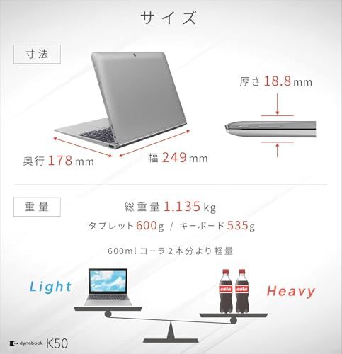 整備済み品 Dynabook K 50 10 1型 2 in 1 タブレットPC 着脱式キーボード intel 第九世代Celeron N 4000 4 GB 64 eMMC HD IPS液晶 1280 x 800 マルチタッチ対応 10点 0976 f 437