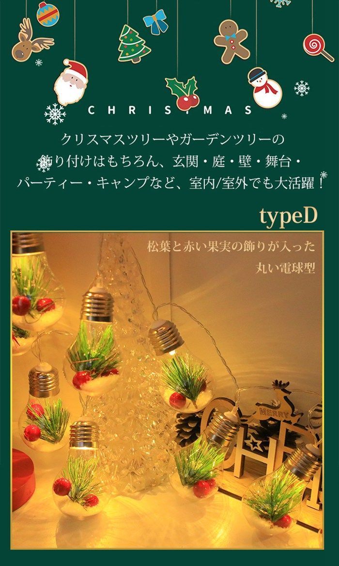 イルミネーションライト クリスマスライト 20球 3m USB給電式 電球型 クリスマス 飾り 中庭 パーティー クリスマスツリー クリスマスツリー用品 クリスマス飾り 室内 室外 LED