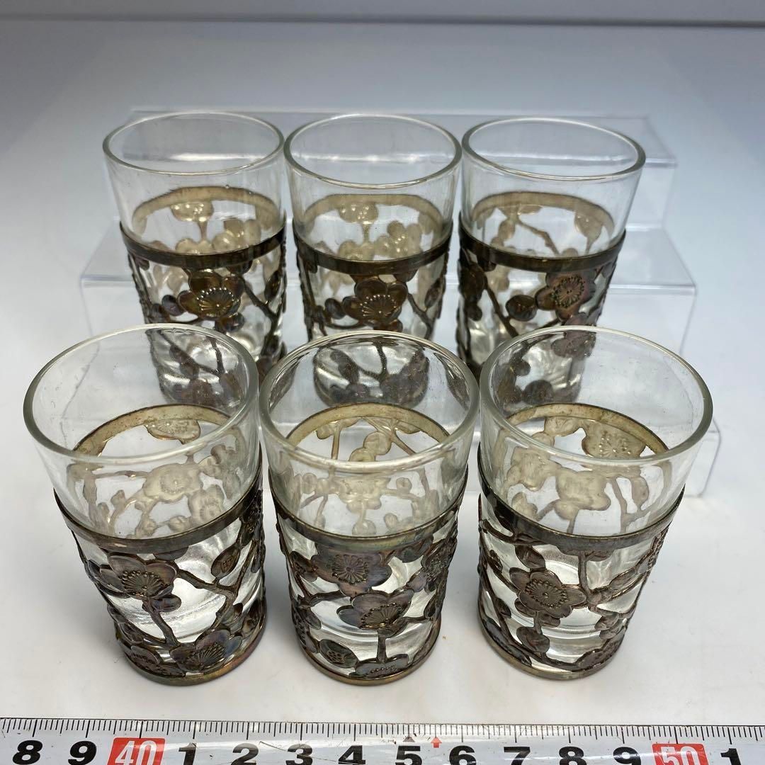 sterling 950刻印 銀透かしショットグラス6点 東Y 6 0606 トコサ