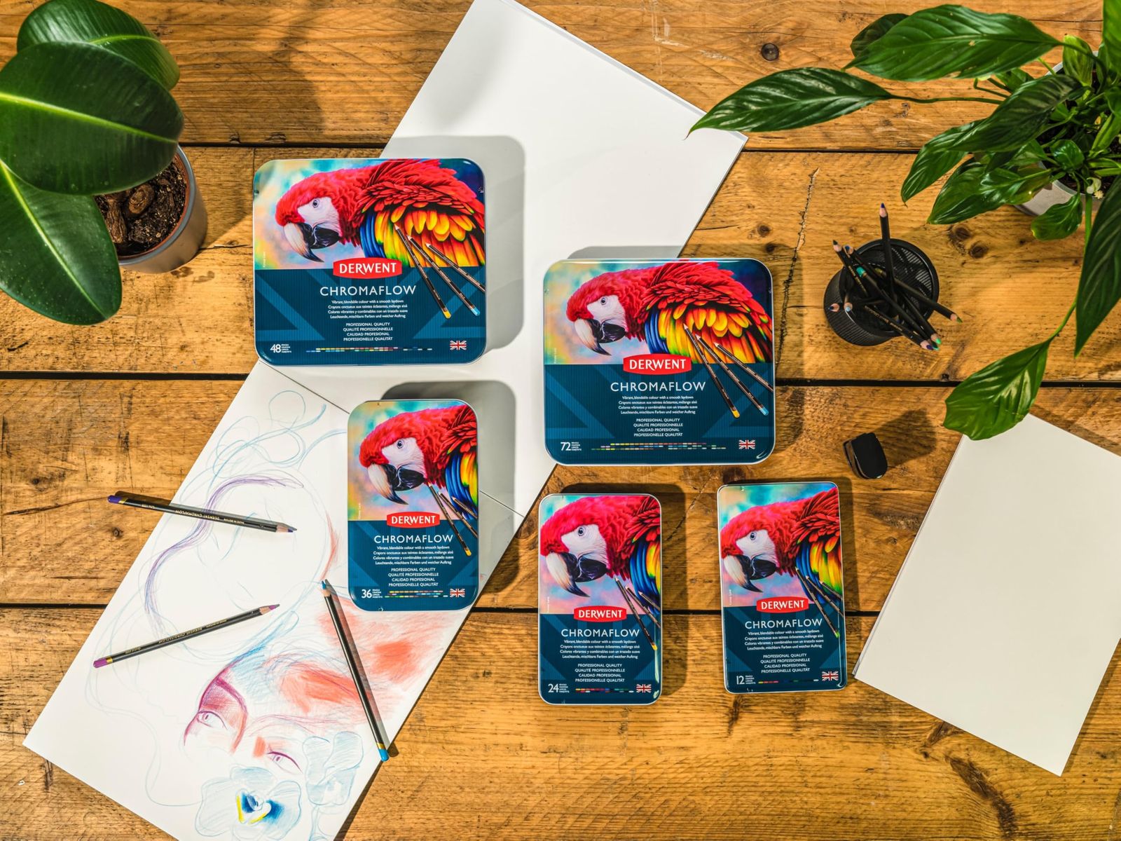 ダーウェント クロマフローは、大胆で鮮やかなレイヤーを実現するために豊富な顔料を配合しています。プレミアム芯の強度は、削るときや使用中の圧力に耐えられるよう設計されております。いつでも安定した、信頼できる品質をお楽しみください。