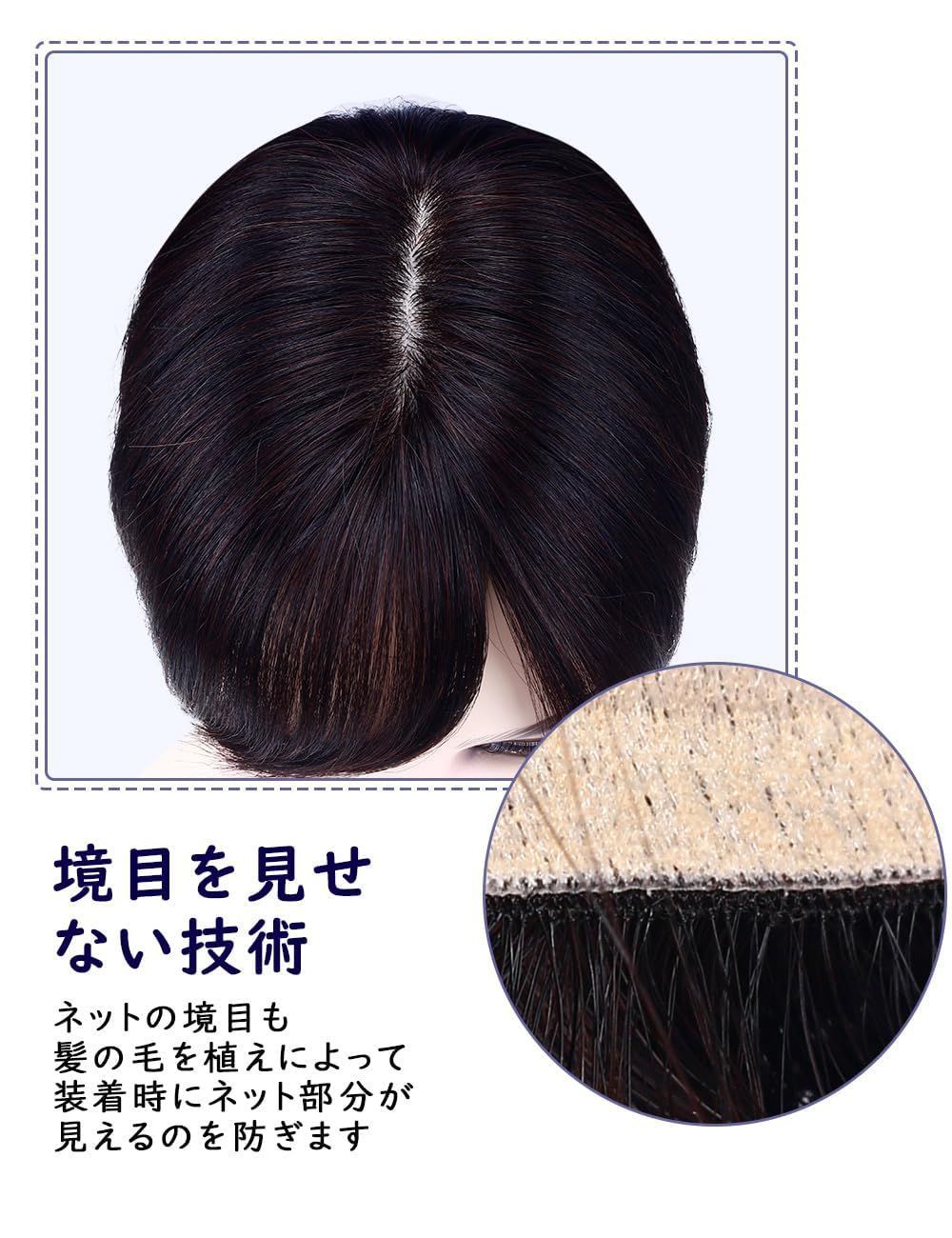 YOYO 部分ウィッグ 人毛100% 分け目 前髪ウィッグ ポイントウィッグ 縦長型 ヘアピース 女性 脱毛隠し 超リアルなつむじ ネットサイズ7 15 cm ダークブラウン 自然色