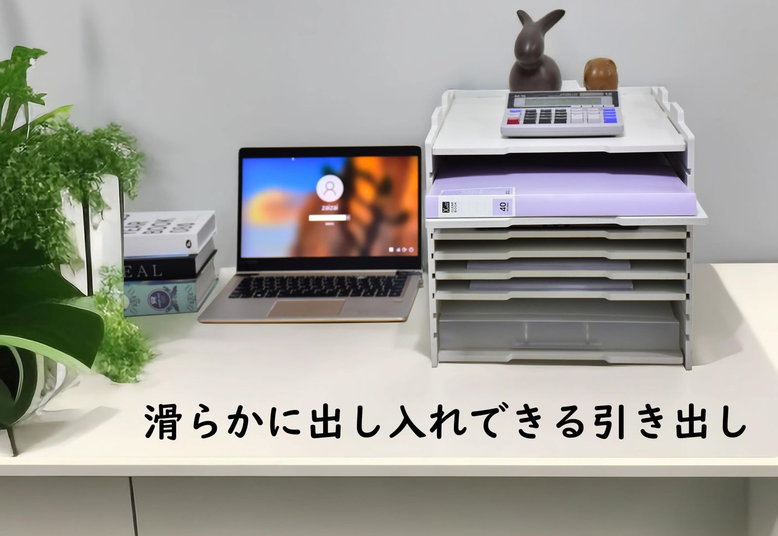●滑らかに出し入れできる引き出し。A3サイズのファイル・書籍・プリント用紙・雑誌などにも対応できる汎用性の高さがポイントです。