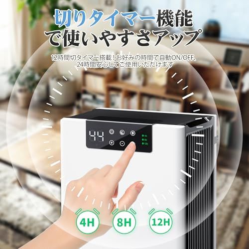 【大容量タンク?スマート機能?自動停止機能付き】大容量タンクを搭載しております(同価格帯平均比150%容量)。自動停止機能とLED水量表示で夜間も管理がラクラクになります。30/湿度80%環境下で、750ml/日の除湿能力を発揮できます(※日本工業規格JIS C 9612に準拠)。4/8/12時間の3段階タイマー設定可能で、ちゃんと部屋をじょしつきし、外出時も安心できます。