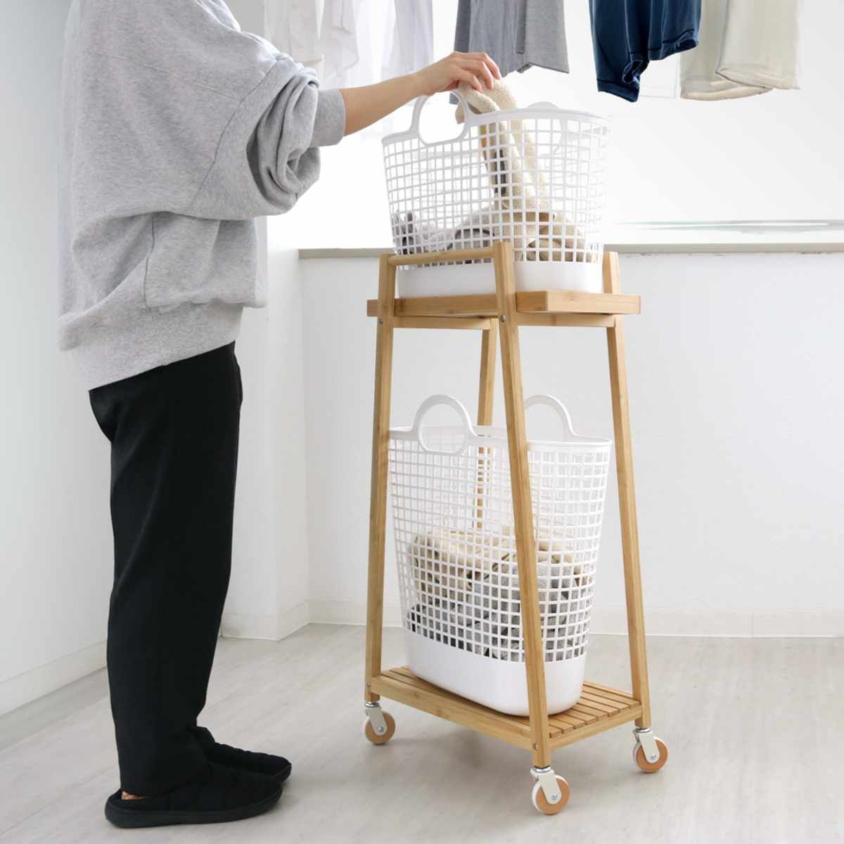 関連キーワード:収納ワゴン 洗濯用品 洗濯 脱衣かご 洗濯籠 バイオマスプラスチック 収納ボックス 洗濯物 おもちゃ かご 収納用品 ランドリー用品 おもちゃ入れ 竹 ベージュ 白 ホワイト おしゃれ オシャレ お洒落 キャスター キャスター付 移動できる 移動 動かせる 便利 サイドバー 小物掛け
