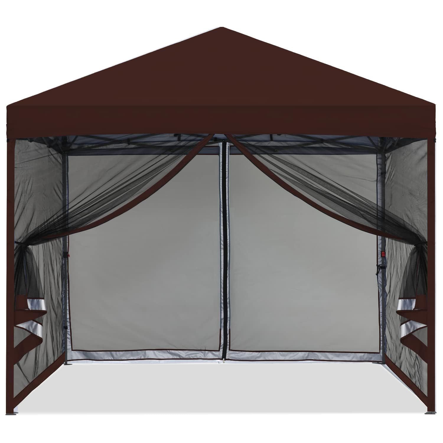 マスターキャノピー(MASTERCANOPY)ワンタッチタープテント メッシュ付き 虫除け対策 3段階調節 UVカット 耐水 スチール キャンプ アウトドア 簡単取り付け 網ネット 蚊帳 (2.5x2.5 ブラウン)