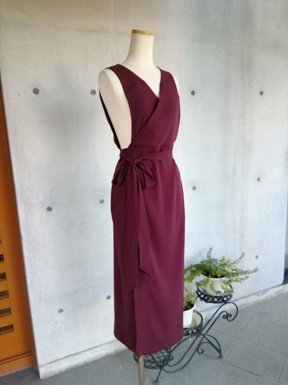 7 L 10 梨地ストレッチ ボルドー 茶道お稽古用エプロンウエストリボン127100 50 3