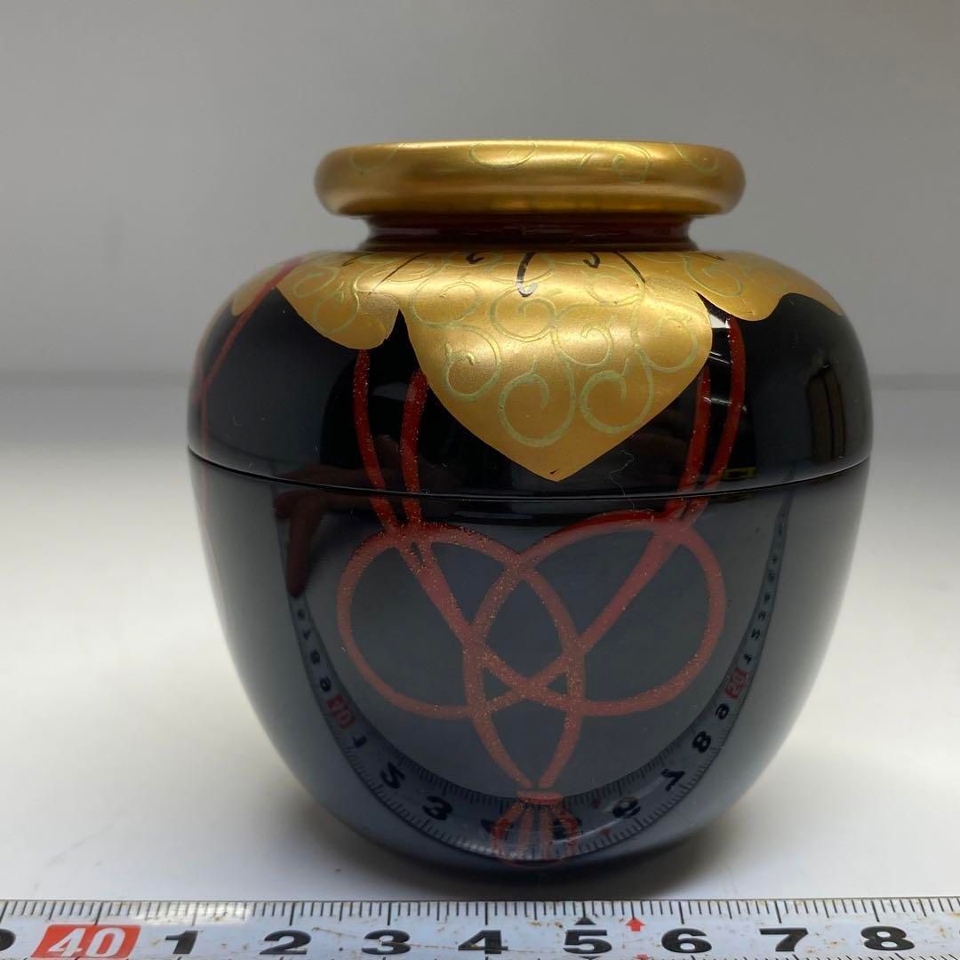 茶3早見征一 上手 唐草蒔絵 壺型茶器 共箱 高さ8 5㎝東な6 0715
