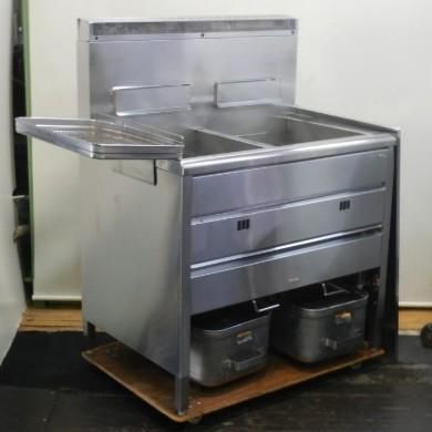 (代引不可)2016年製 タニコー LP ガス 2槽 フライヤー TGFL-87CW 18L×2 W87D60H80(+36)cm プロパン 70kg ホース接続×2 揚面積W383×D440mm 商品は新品です。 多少の傷汚れあります。 状態画像にて判断願います。 油を張って動作確認済です。 圧電点火、サーモ動作問題ありませんでした。 もともと都市ガス用だったものをLPガス用に変換してあります。 ガス接続 サイズ 9.5mmゴムホース接続×2 よろしくお願いします。 送料 大型宅配便 C 代引不可