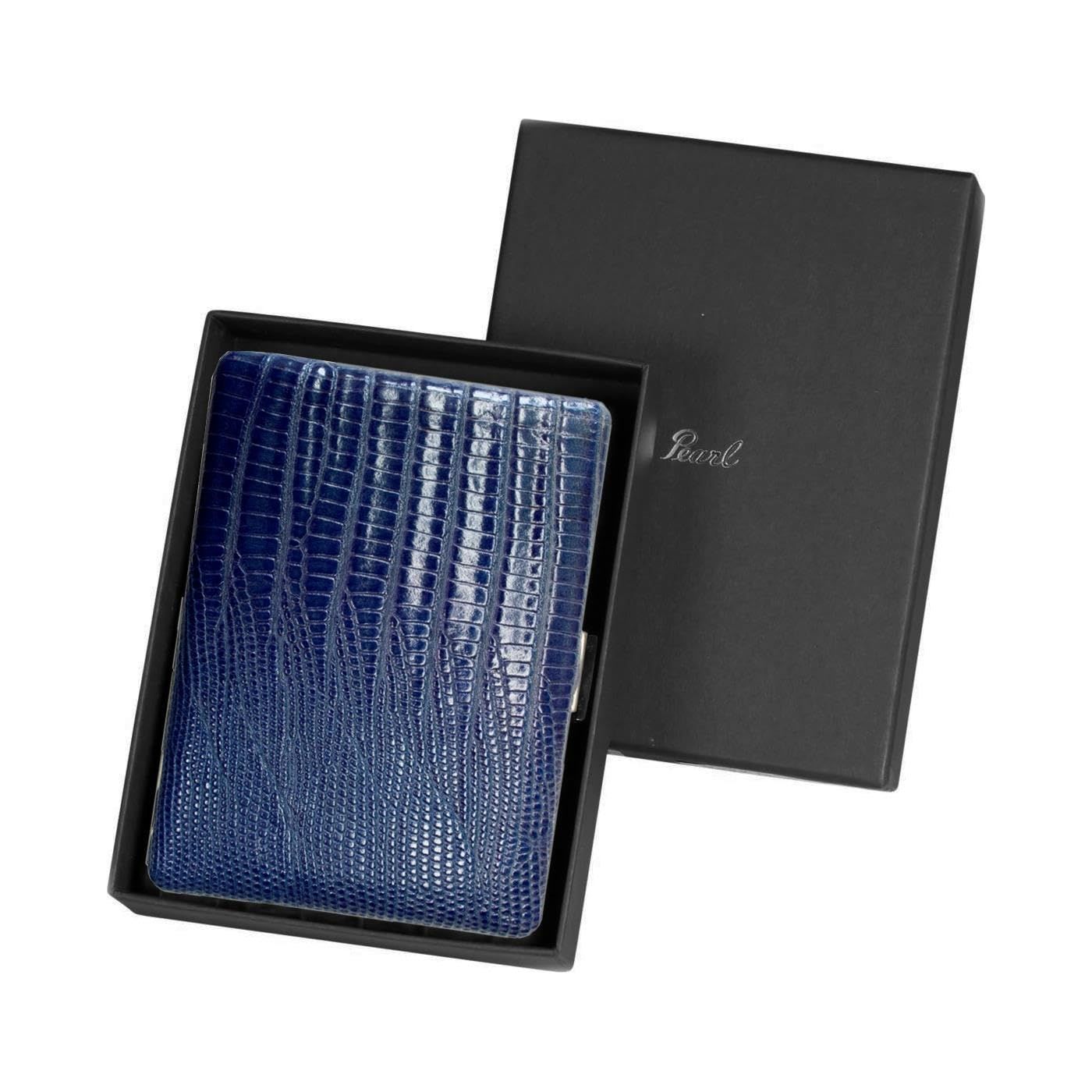 坪田パール タバコ ケース ハンドメイド クルミ革巻き ロングサイズ 100 mm 9本収納 レギュラー 70 12本収納 リザード型押しレザー ブルー 1 04480 30
