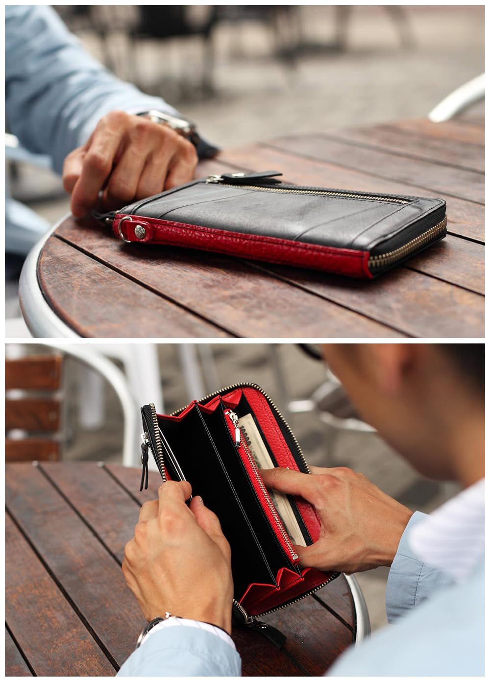 【アイテム説明】日本の職人の技術が凝縮された、プレミアムなロングウォレット。タイヤチューブを漉く(すく:薄くする)という特殊な加工により、タイヤチューブで仕上げたタフなボディながら、軽量化を実現。耐久性の高いタイヤチューブと本革との組み合わせは非常に高度な技術が必要な為、作れる職人は僅か。その為、各色数十個単位での少量での生産となり、とても希少性の高いアイテムとなります。 充実した容量の内部機能ながら、ファスナーを閉めれば安全に、スマートに持ち運びが可能。プレゼントにもぴったりの専用のブラックケースに入れてお届け致します。