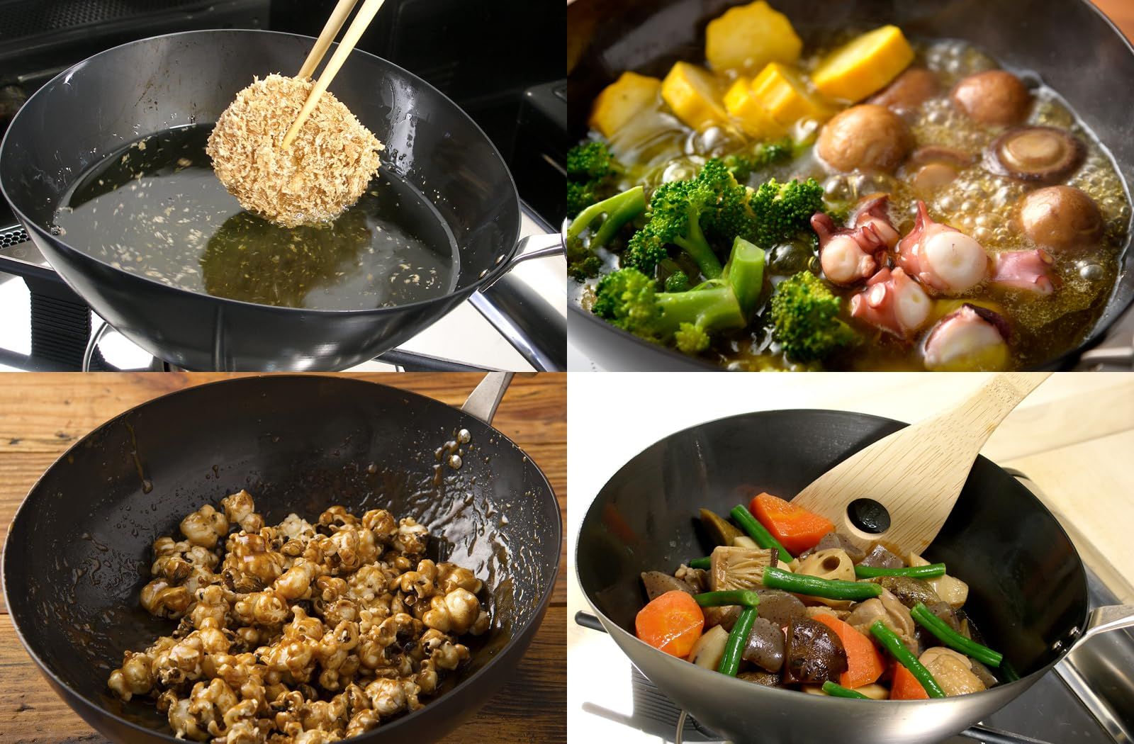熱を蓄える力が大きく、たっぷりの熱(豊富な熱量)を食材に素早く通すので、炒め物がシャキッと、焼き物は香ばしく仕上がる