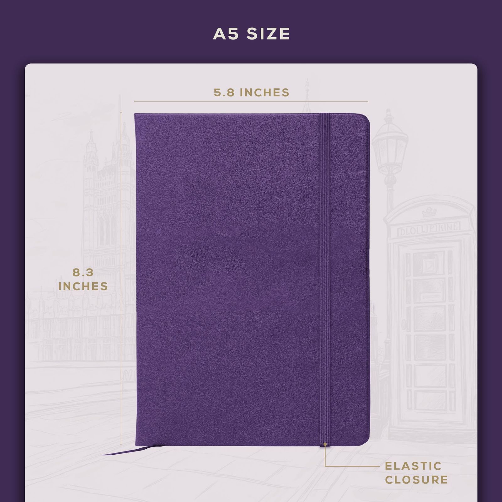 ビーチモーブック罫線ノート‐A 5 紫|ヴィーガンレザー付きのハードカバーのジャーナル 120 gsm グラム毎平方メートル の厚いクリーム色の罫線紙|ギフト 属|会議用 作家 学生 日記を書く方に向け