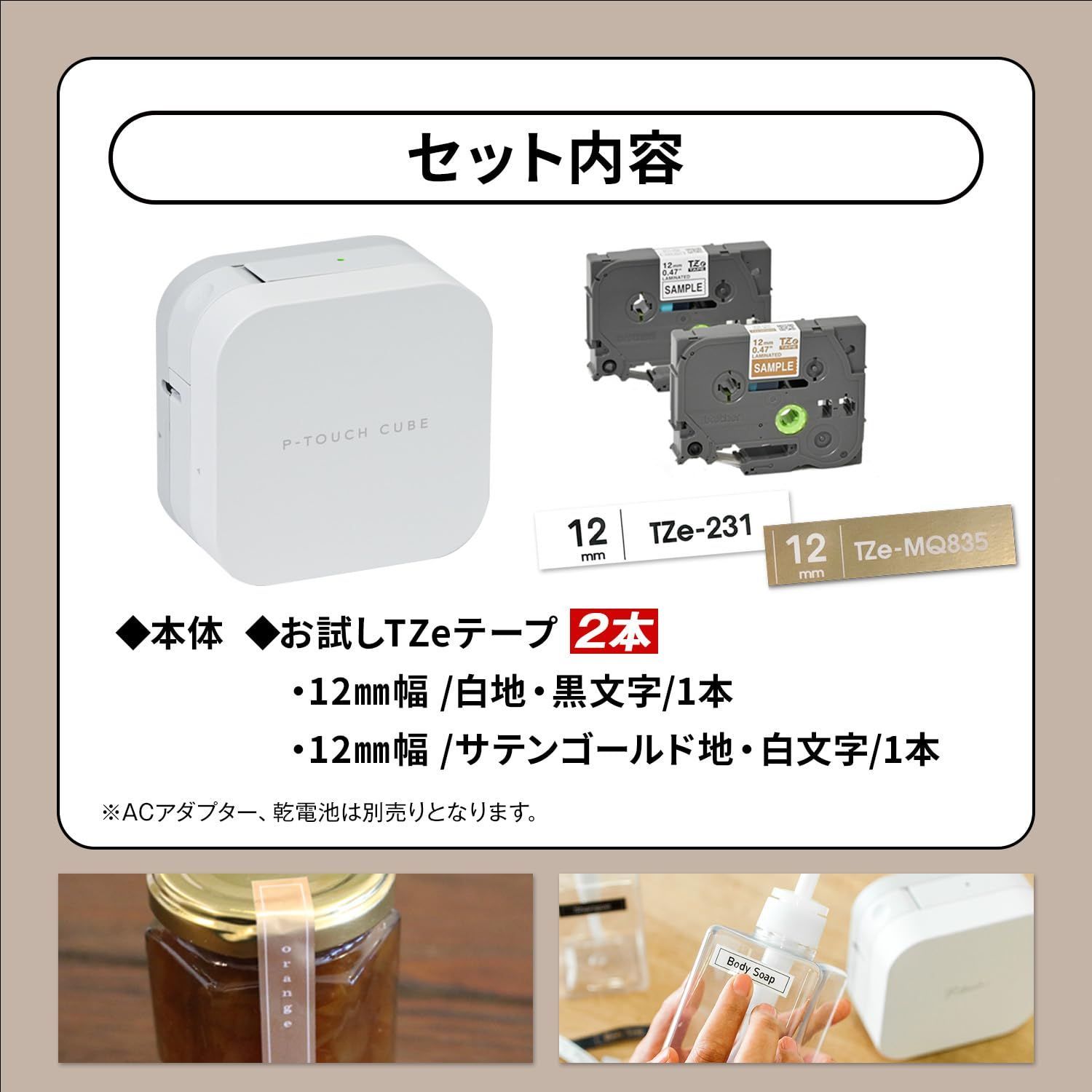 テープカセット:TZe規格テープカセット3.5、6、9、12mm対応