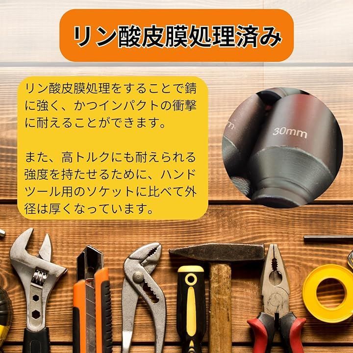 *「工具は耐久性が大事」リン酸塩皮膜処理(パーカー処理)を施しているため、高硬度で耐摩耗、耐食、防水、防錆性に優れる仕様。