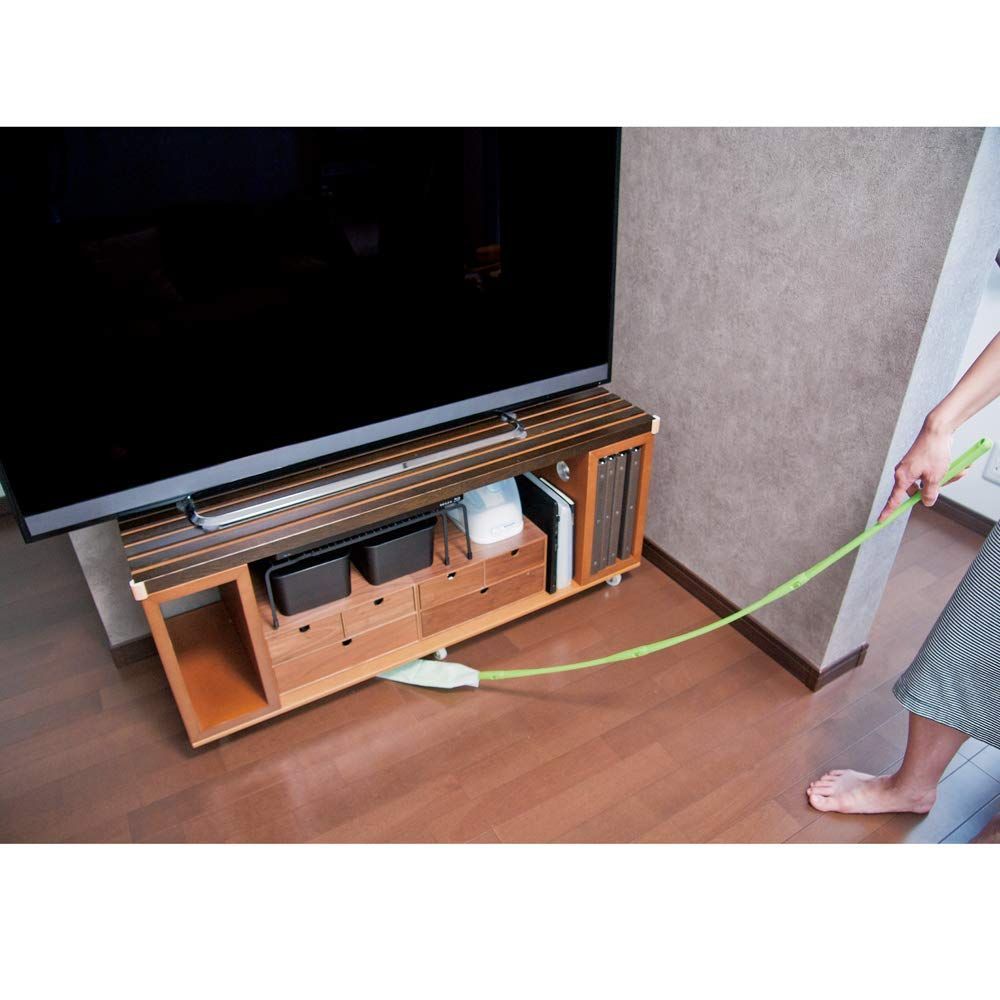 全長約139cmのしなる長い柄で、約1cmのすき間に入り込み、奥まで届く。手の入らない冷蔵庫の下、洗濯機の下、ベッドの下のおそうじに便利。各社共通の使い捨てフローリングワイパーシートを取り付けてご利用ください。