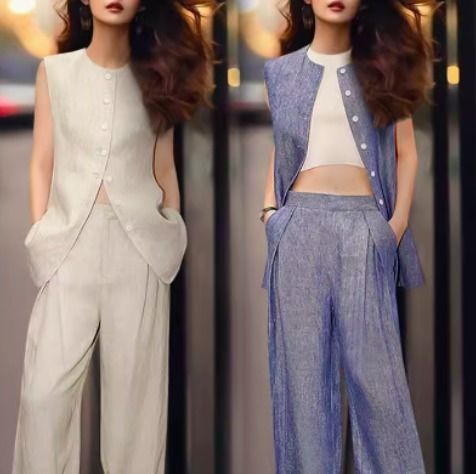 セットアップ ノースリース トップス パンツ リネン エレガント