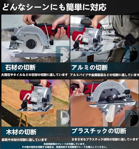 【人間工学デザイン&快適で安定した切断】この充電式丸ノコは、左右両手で操作可能で、モーターが右側に配置されており、反動による予期しない事故を効果的に軽減します。このデザインにより、ユーザーはノコ刃の切断プロセスをよりクリアに観察でき、切断の安全性と精度が向上します。プロフェッショナルの方も初心者の方も簡単に操作でき、より安定し快適な切断作業が楽しめます。
