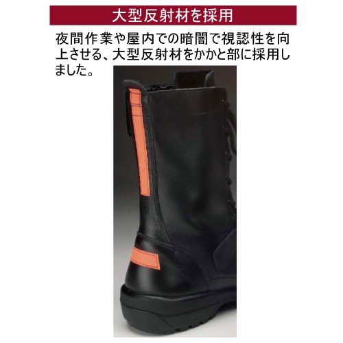 ●先芯:ワイド樹脂 ●甲被:牛クロム革(ソフト型押) ●踏抜防止板:ステンレス板 ●中敷:EVA2層カップインソール(抗菌・防臭) ●靴底:合成ゴム2層底[標準重量]
