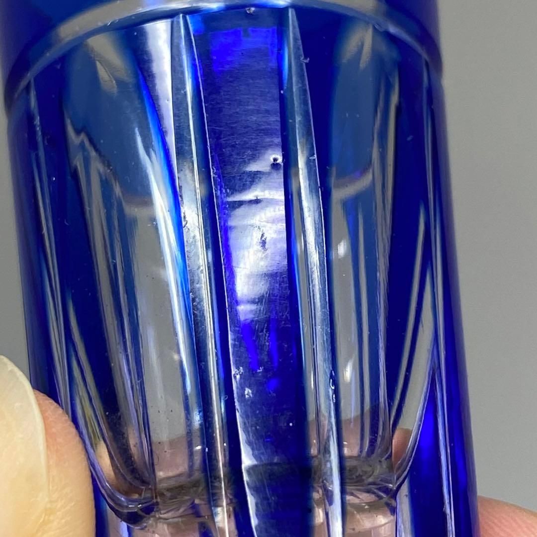 時代 ブルーガラス ハンドカット 切子ショットグラス 5客東金6 0225