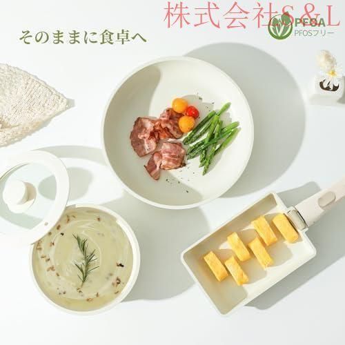 * 快適な調理体験 内面がマーブルコートをしているため、焦げ付きにくくスムーズに調理できます。調理後もスポンジで軽く拭くだけで、汚れもスルッと落ちます