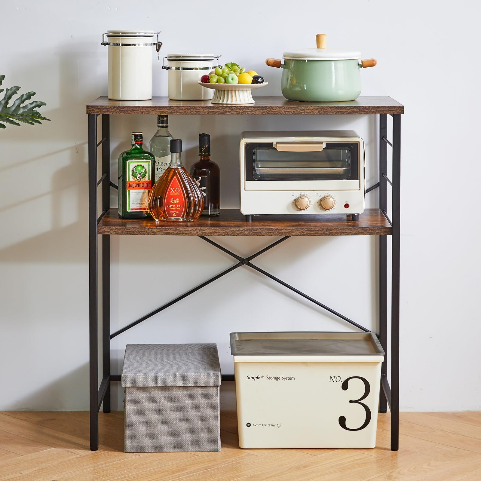 収納ラック レンジ台 炊飯器 大型レンジ対応 作業台 幅80 奥行40 高さ87 5 cm 可動棚 簡単組立 ゴミ箱上ラック キッチンラックゴミ箱上レンジボード ブラウン IBUYKE