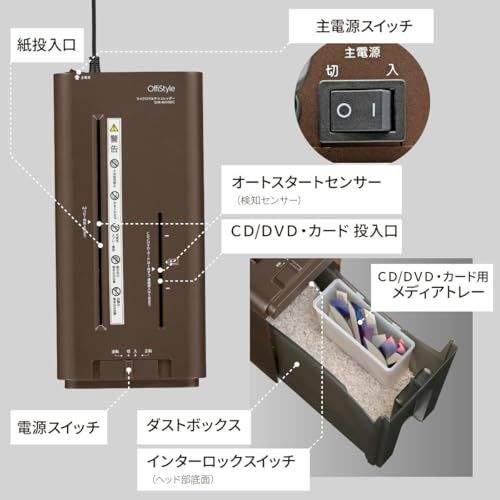 ■ 最大細断枚数:紙…A4コピー用紙(64g/m2)5枚、CD/DVD・カード…1枚