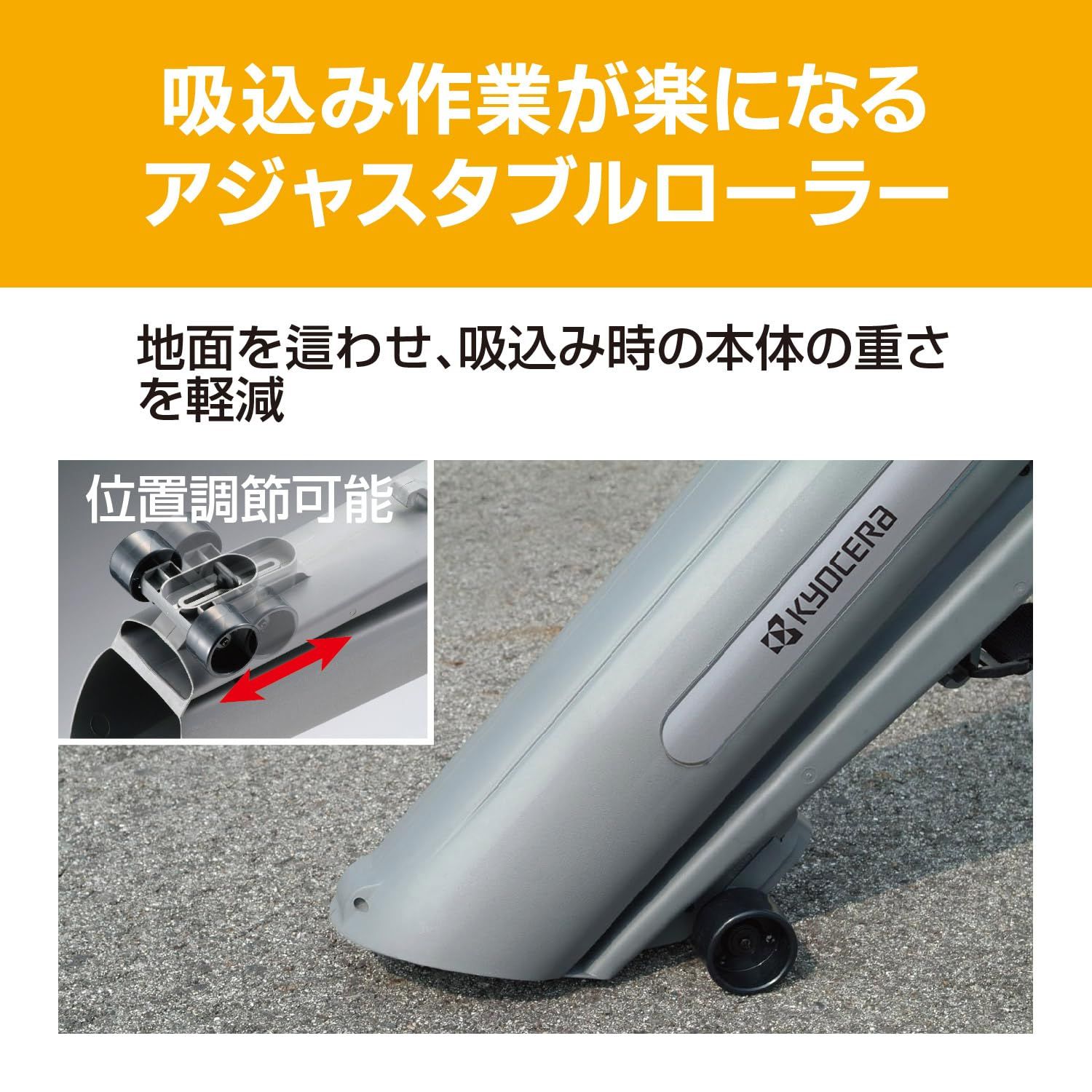 ●長時間作業の疲労を軽減するアジャスタブルローラー付きです
