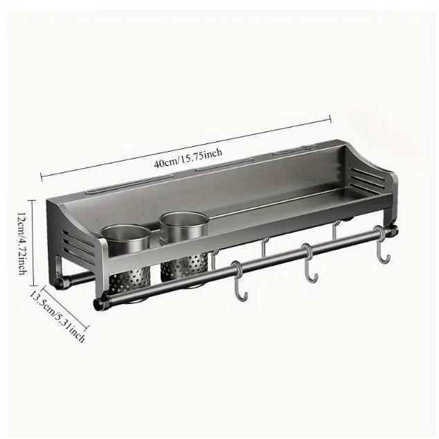 ステンレス製壁掛けキッチン収納ラック ドリル不要のメタルオーガナイザー 調理器具 包丁 スパイスに適した 二重カップ保護デザイン付き